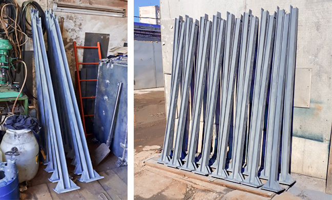 Задача: нарезать металлические заготовки в размер, сварить основания для закрепления в грунте, подготовить крепления для сетки. Стойки покрыты качественной краской по металлу, отгружены заказчику, установлены - все работы произведены в срок.